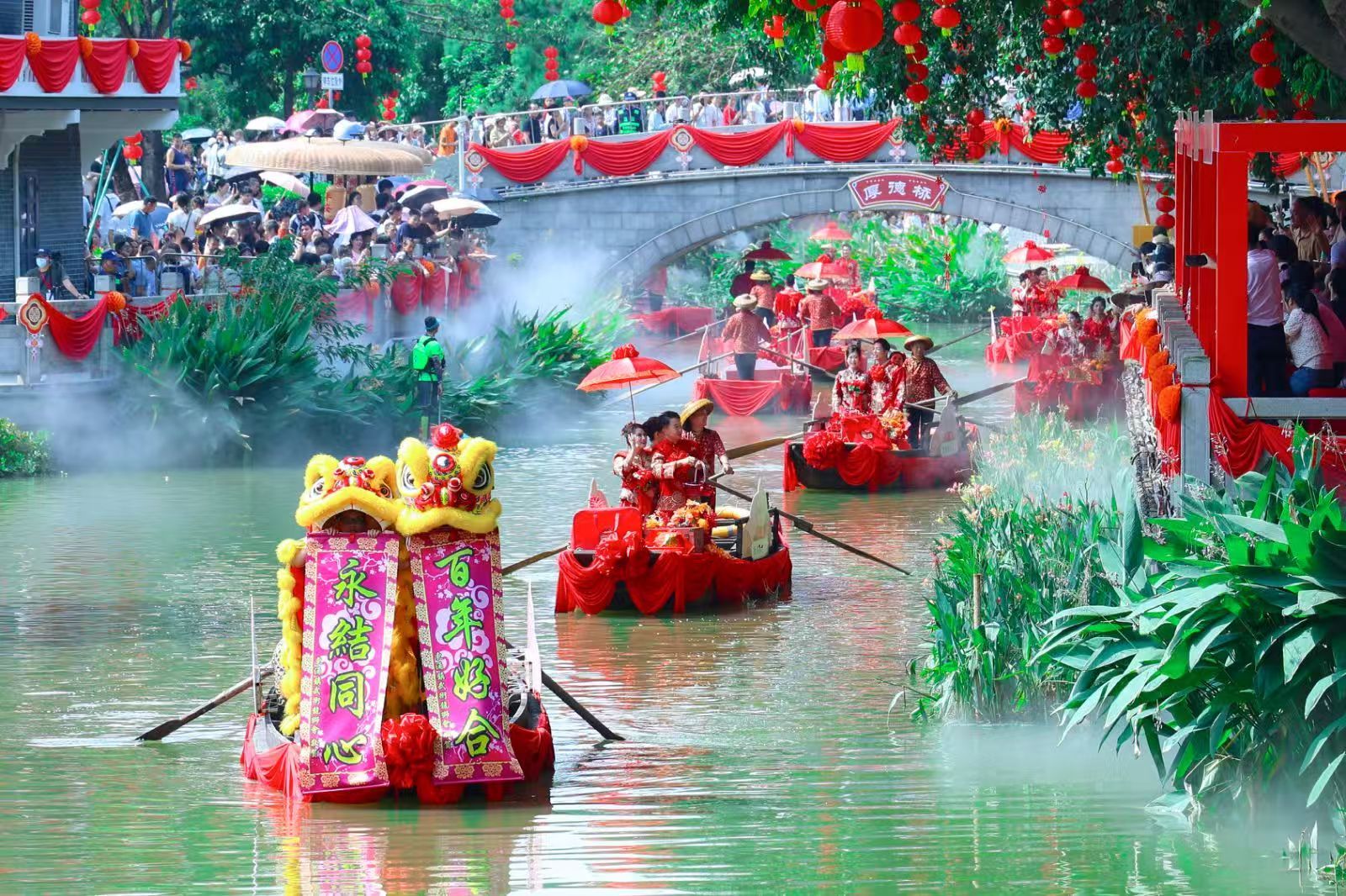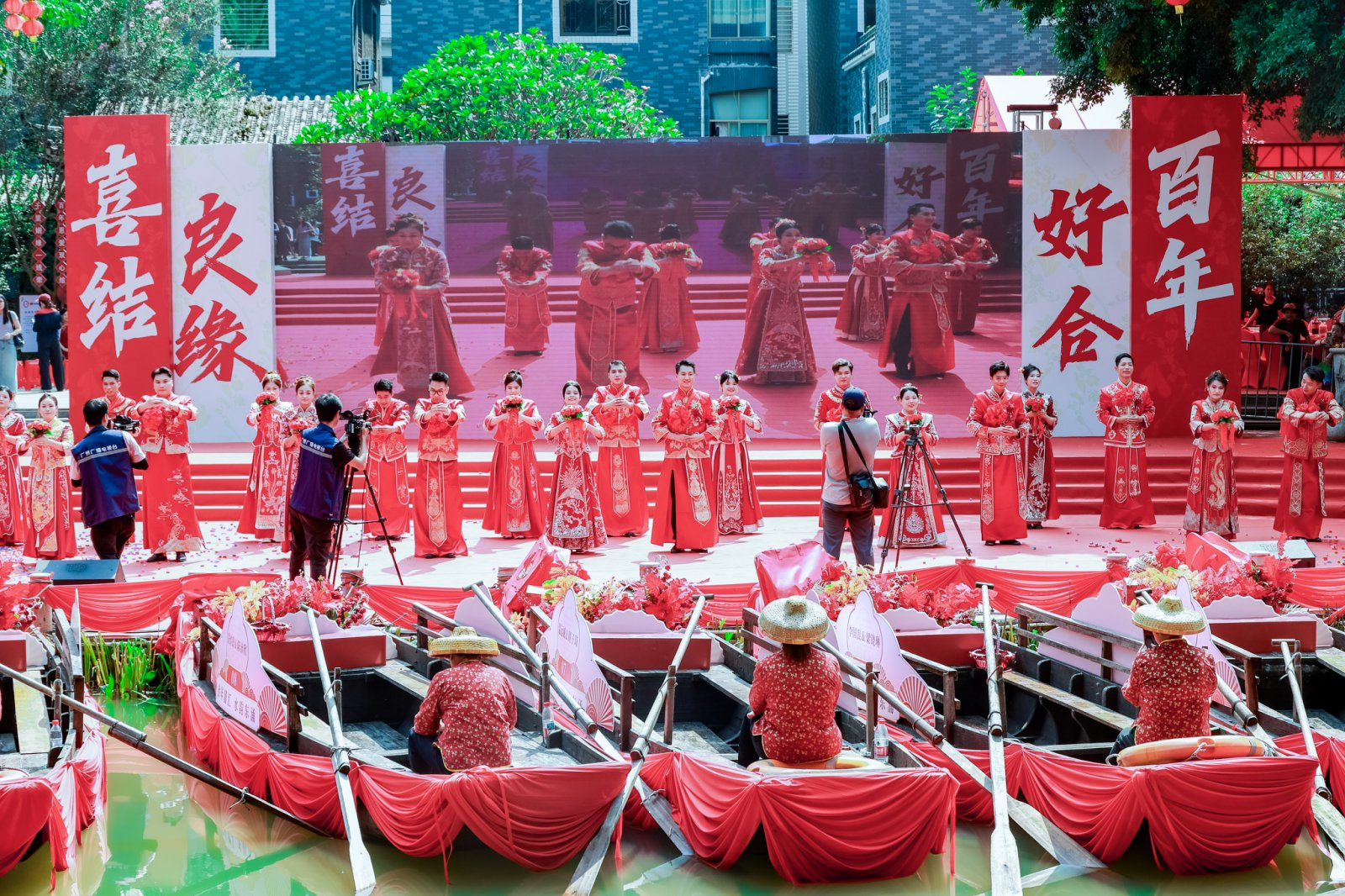 水上花艇迎亲、非遗婚俗庆典……近日九游会J9,广州市南沙区东涌镇第七届水乡集体婚典在“东涌里”圆满举行。来甘心湾区不同业业的10对新东说念主,以传统疍家婚俗花式喜结连理,生动传播新期间家风文化。