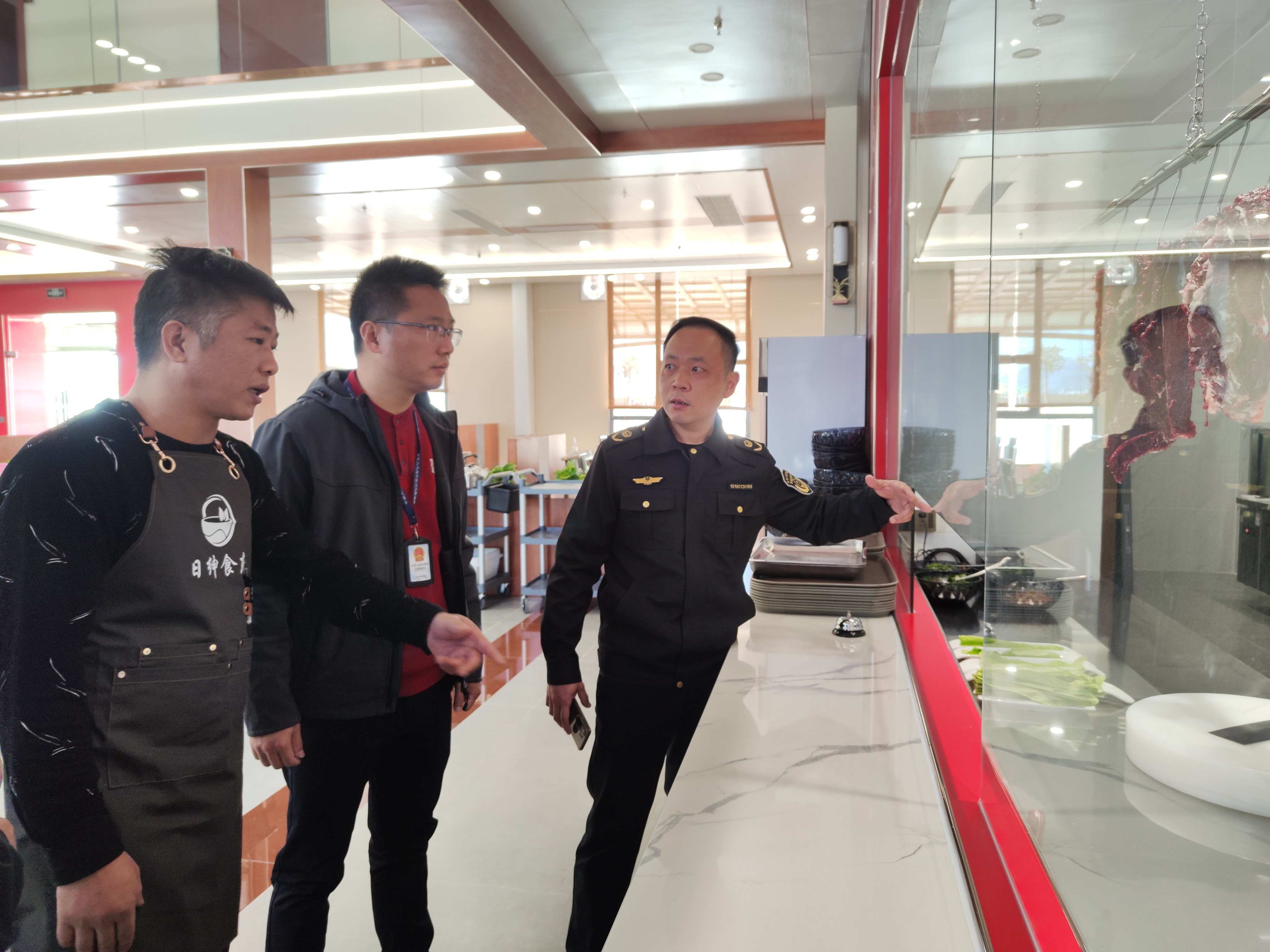 图为湘桥区官塘镇纪委聚积镇市监所在辖区内某新开张的牛肉暖锅店开展督查。陈晓燕 摄