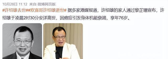 讣告酿成闹剧,恶心相等 从许绍雄27日住院开动,采集上对于他的负面神话就没停驻来。 28日凌晨他示寂后,这种音信致使变得更多。 有东说念主往事重提,把2019年那那桩早就被阐发为假的绯闻翻了出来,直指许绍雄“东说念主设坍塌”。