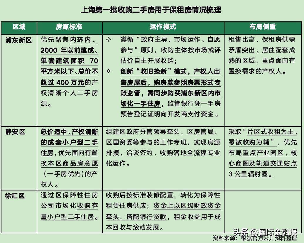 近日,上海市肃肃开动了首批收购二手住房用于保险性租借住房的责任,试点区域为浦东新区、静安区、徐汇区,由各区公租房公司行为收购主体,中国建造银行提供金融支合手。