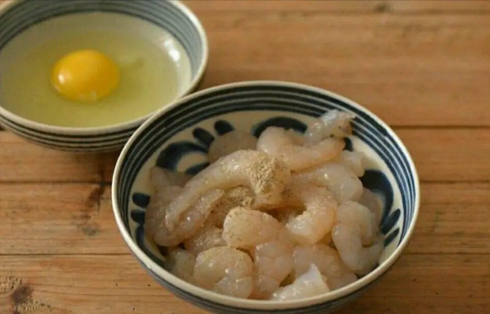 1.西兰花一个给它切成小朵,放入面粉中净水干净。虾仁20个加入葱姜料酒去腥,腌制五分钟备用。