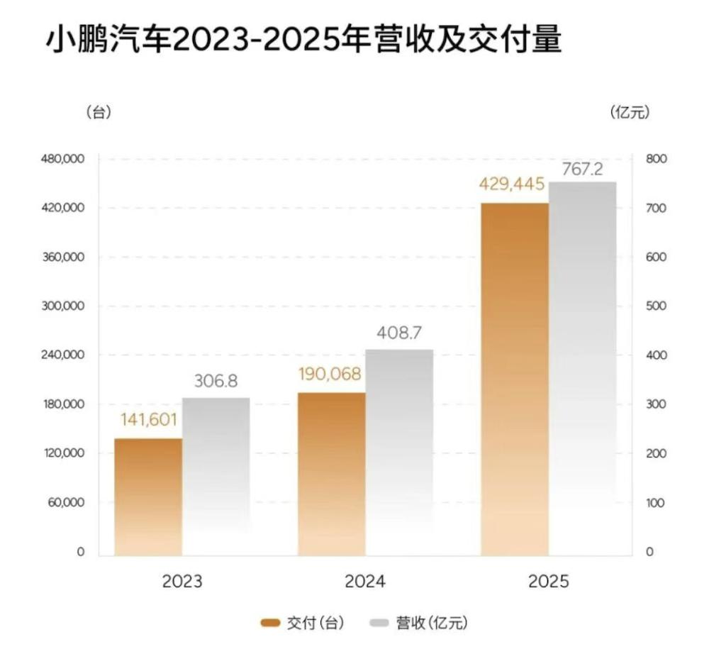 就在今天,小鹏汽车交出了 2025 年年报,总收入、毛利率、总托付量均创下历史新高。